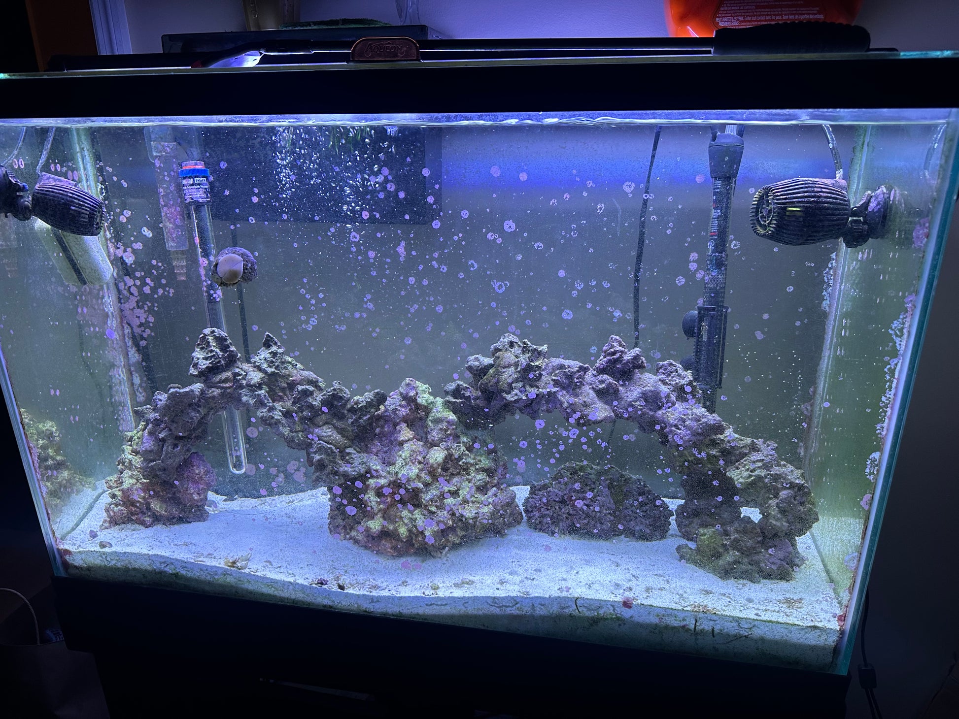 This 55 Gallon Saltwater aquarium is being sold as is with hang on back filter.
