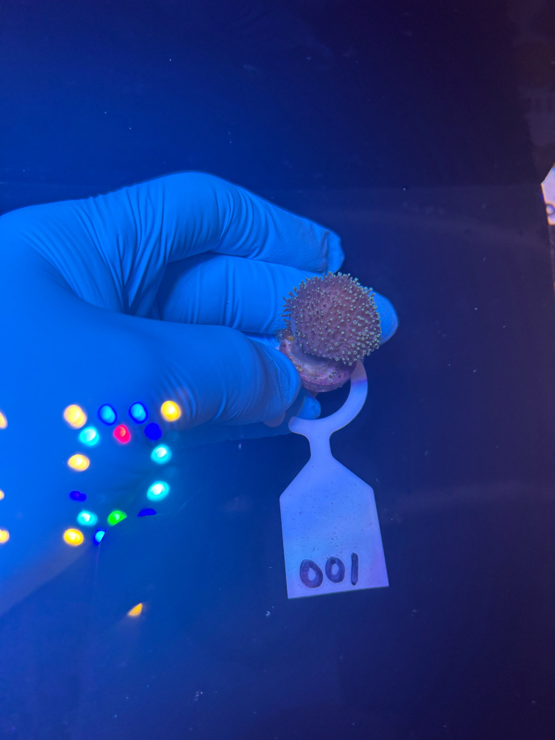 This frag is well-attached and fully healed, showing healthy tissue and normal surface behavior. You may observe occasional waxy shedding—this is part of its natural growth cycle and not a health concern.